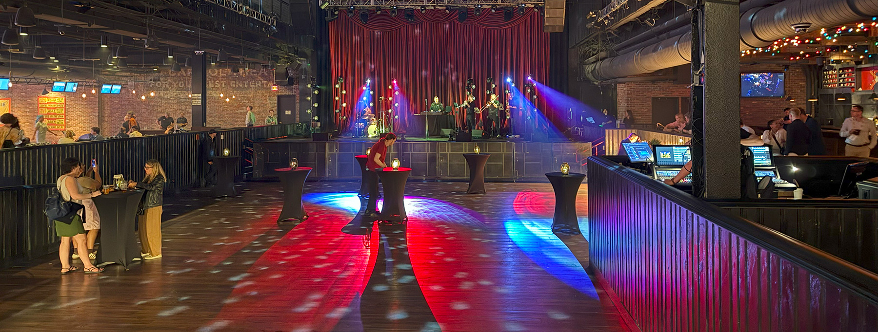 Above: A live band entertains attendees during the opening reception at Brooklyn Bowl, 7:30 p.m. Tuesday.