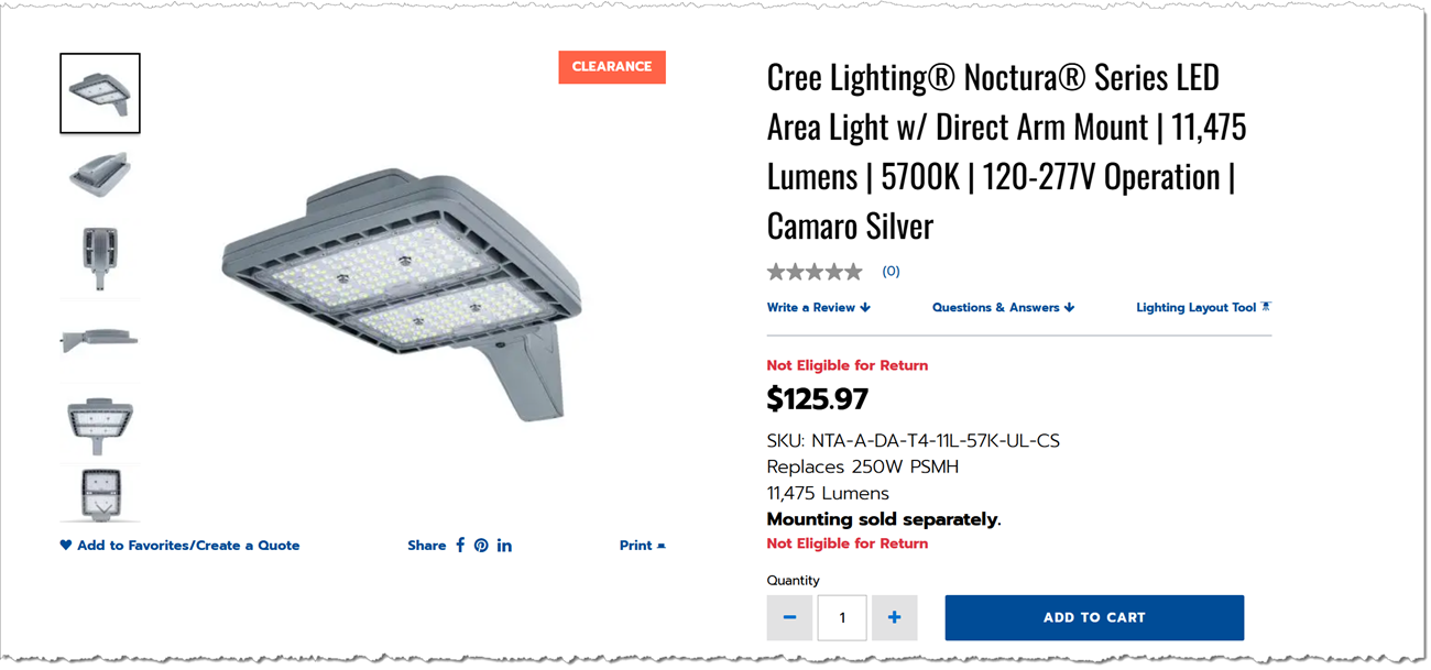 Above: Cree Lighting area light marked for final sale on E-conolight