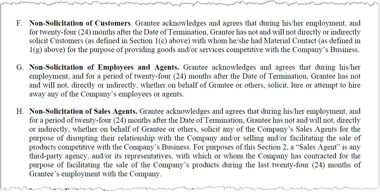 Above example: An excerpt of a past Acuity Brands non-solicitation agreement as part of an employee stock incentive program
