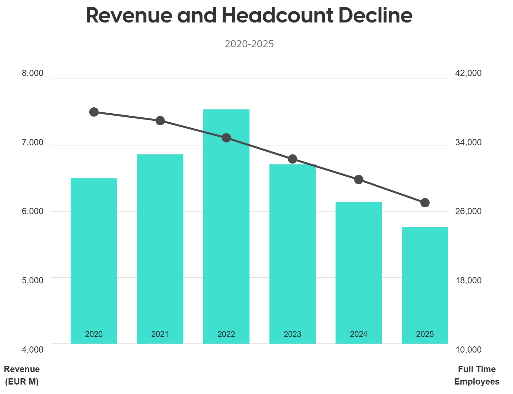 In January 2024, former CEO Rondolat announced a 1,000-job reduction to match revenue realities. By the end of that year, 2,461 roles had been shed, including through attrition.